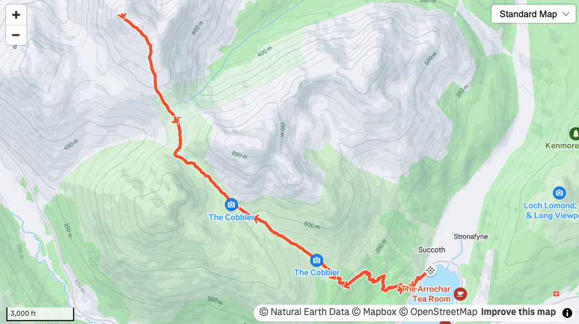 Park in a large car park at Succoth where there is a charge and follow the signposted trail up into the woods and up the hill. You zigzag up through the forest before getting out onto a brilliant, almost alpine, footpath that follows a burn past the Narnain Boulders up to the bealach between Beinn Arthur, Beinn Ime, and Beinn Narnain. The views of the Cobbler are phenomenal and it is clear why it is such a popular hill.