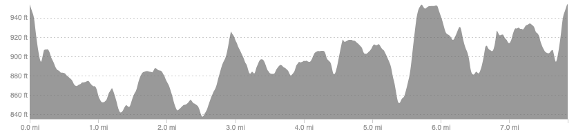 A gently rolling loop that could be used for easy runs, tempo runs, or as a session location.