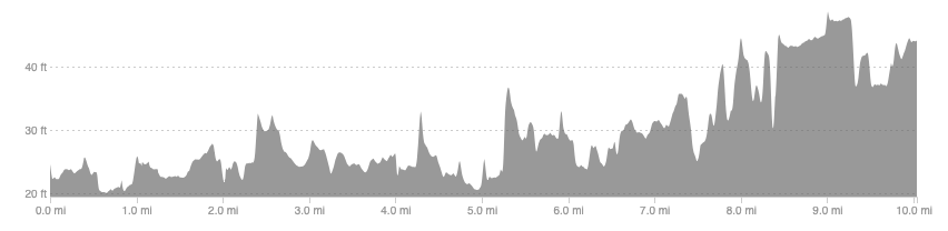 A good place to plod some easy miles and avoid the busy city with the possibility to pick up the pace and run an out and back tempo run or progression run.