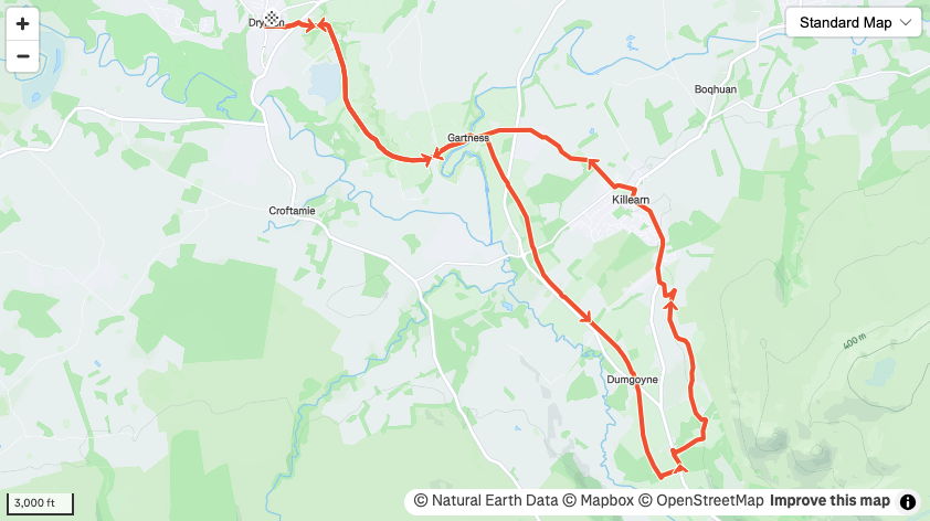 Once at the pipe track head north to Killearn, dropping down and through the village before following Gartness road back to the West Highland Way. From here retrace your steps. There are some fantastic views on this route and it is mostly on soft surface, making it great for an easy run.