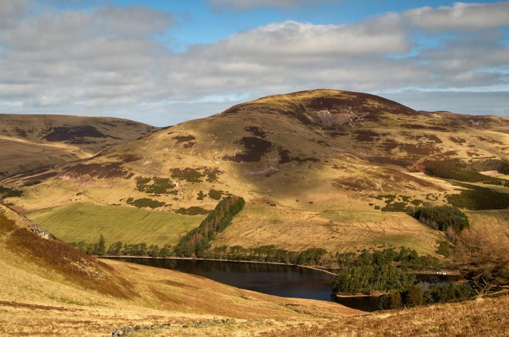 From Carnethy continue in the same direction down to the bealach where a path intersects and turn right to go downhill to the reservoir you have been looking down on. Here is where you could extend to take in more summits if you wanted to.