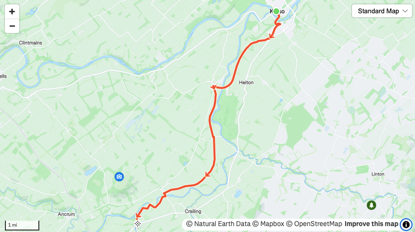 If you want more of a loop rather than an out and back, then the country lanes just south of Roxburgh make for nice running. Alternatively, you can return to Kelso from Roxburgh following the Teviot but this path is narrow and twisty so not as pleasant as the railway path.