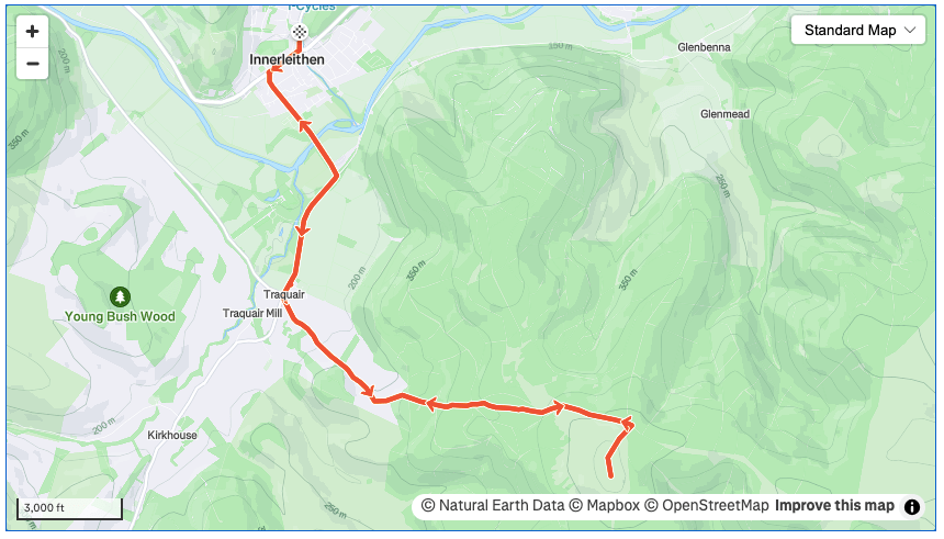To return simply retrace your steps or, if you are feeling adventurous, pick up the forestry roads and wind your way down to Walkerburn, returning to Innerleithen by the back road or the old railway line bike path.