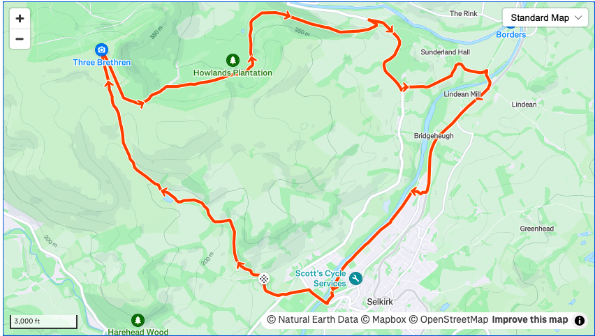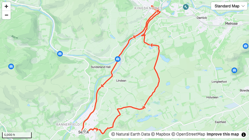 A borders icon from a charming town on the banks of the Tweed. A 7 mile route with a couple of steep digs.
