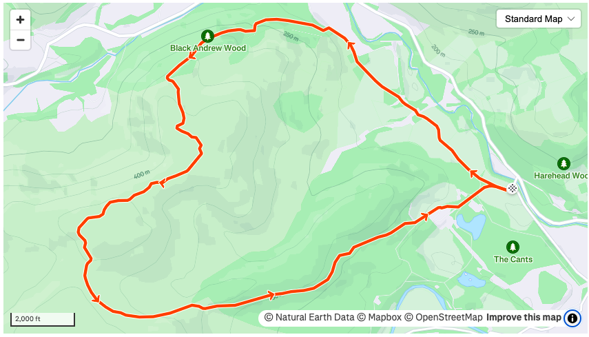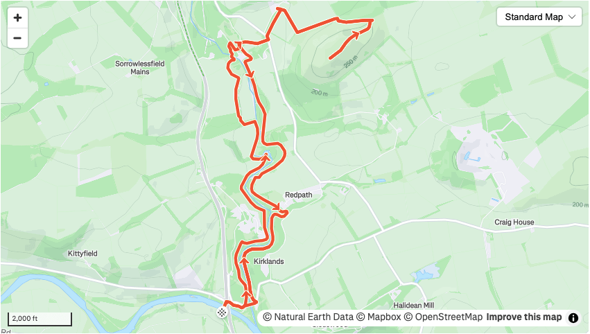 An undulating and twisty 8 mile route with a short and sweet summit that offers good views towards the Eildons.
