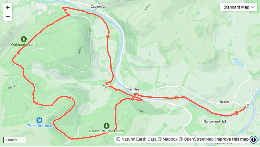 A great long run from Galashiels town centre with a bit of everything in it. The route can easily be shortened to 7 and 11 miles instead of 16.